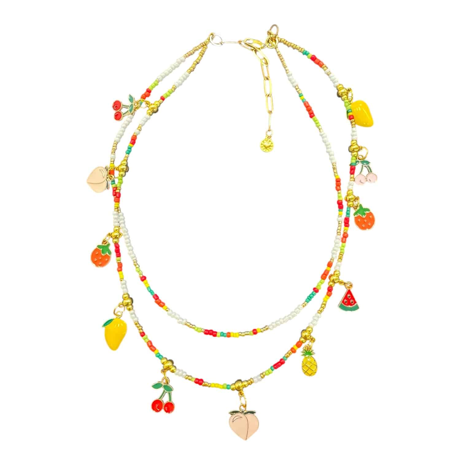 Wear “Fruit Salad Days” with your favourite linen dress, crisp tee, or layered with other pieces from the Charm School collection for a full fruity moment. Whether you’re hitting the markets, heading out for brunch, or just feeling extra fabulous, this necklace brings a fresh pop of joy to your look.