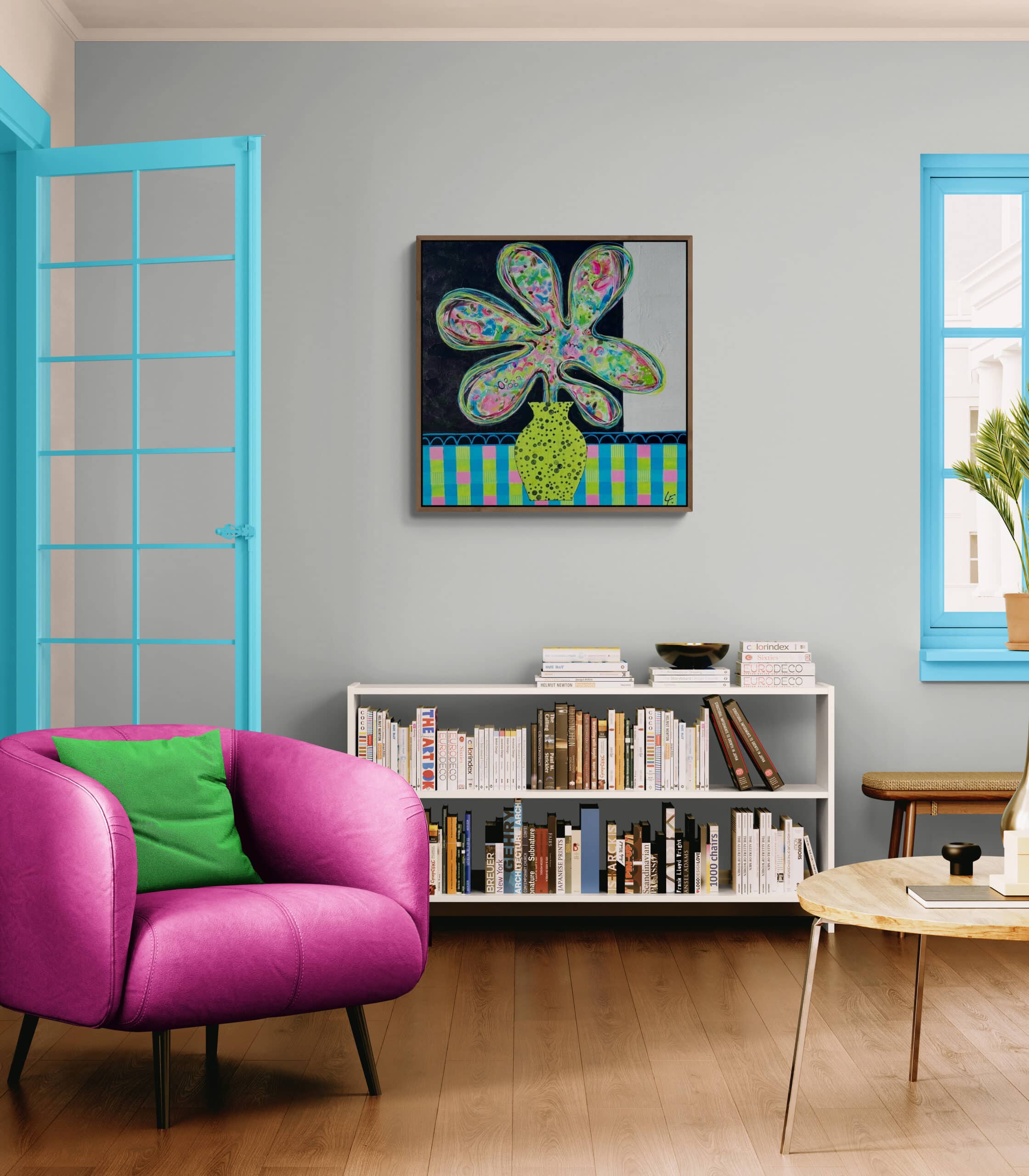 Each piece in Hothouse Flowers is original, mixed media on canvas, and professionally float framed for a contemporary finish. Whether you’re a seasoned collector or seeking a statement piece for your home, these works bring a fresh, modern take on florals while carrying the heart and soul of Farley’s artistic voice.