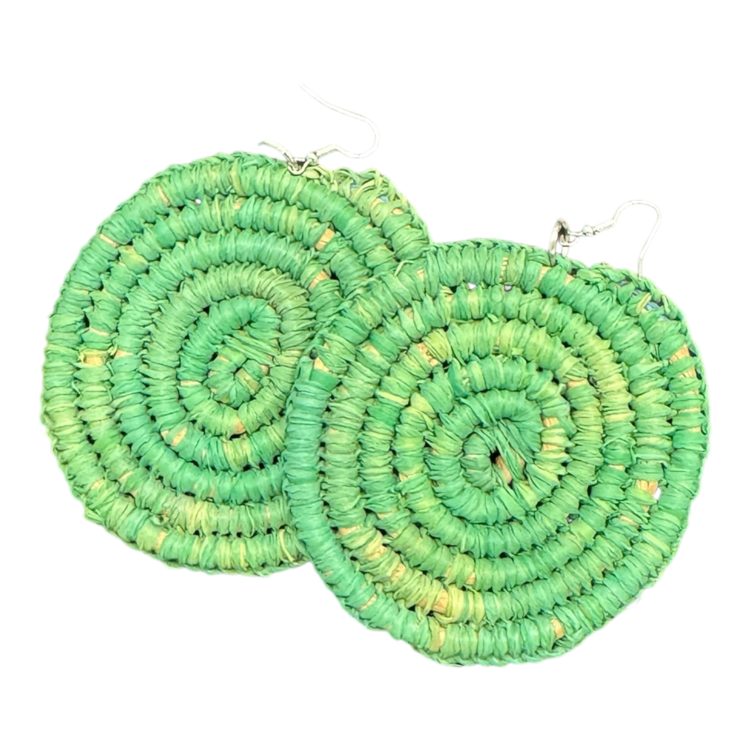Earthy, grounded, and connected to Country, the Bushleaf Spirals earrings capture the deep greens of native leaves, mossy ground, and bushland after rain. Handwoven by Gomeroi artist Debbie Wood, these earrings celebrate both the richness of nature and the strength of cultural weaving traditions.